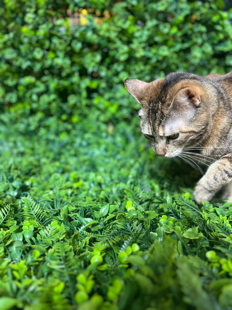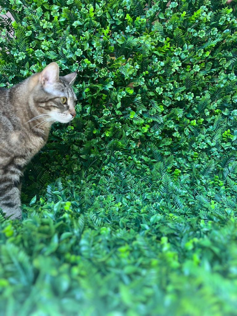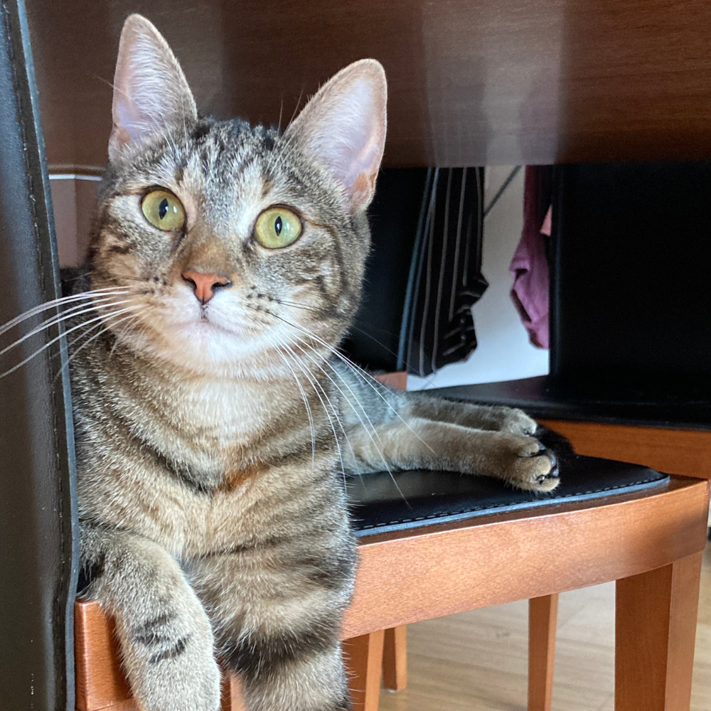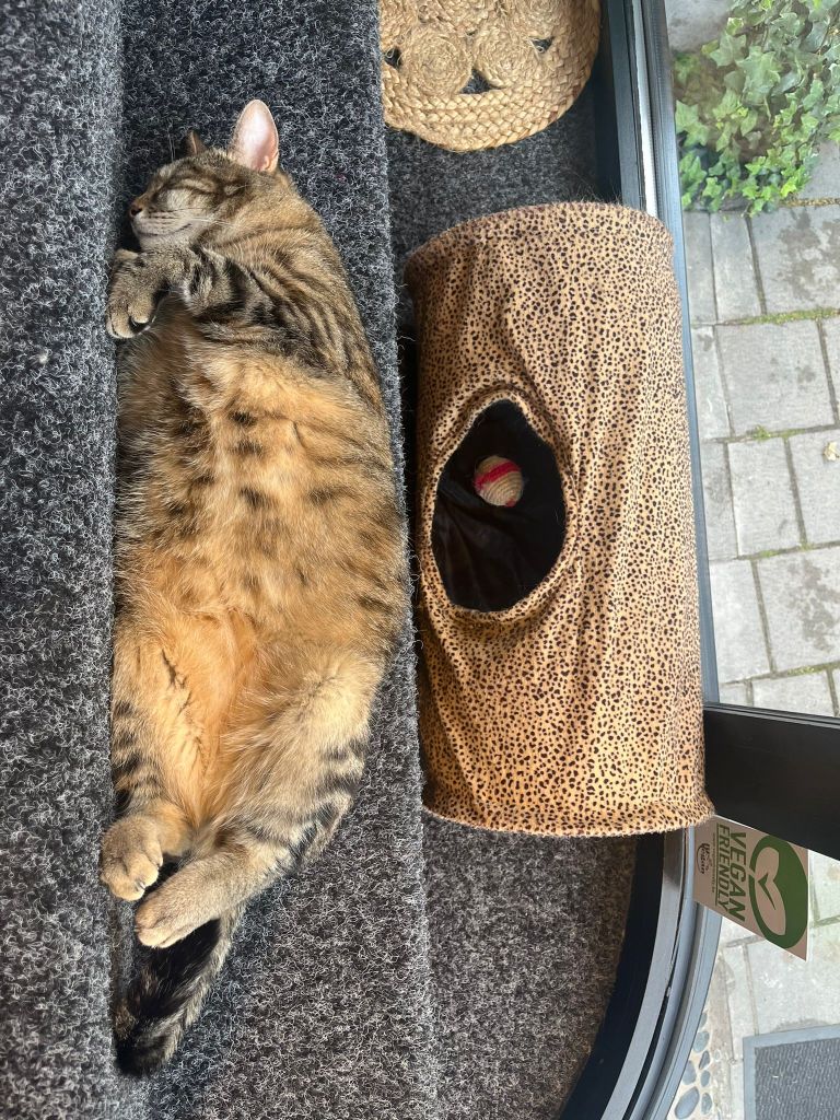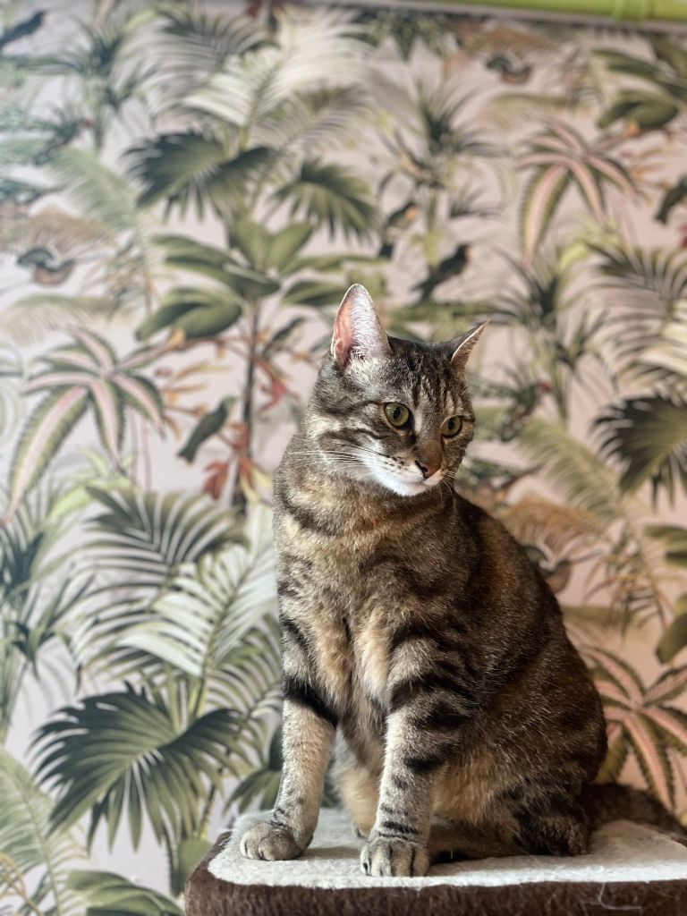 Als je een kat door ons café zag rennen, kreeg je waarschijnlijk met Lizzie of Lucy te maken! Deze zusjes tijgerkatjes zijn geboren op 22 april 2021 en bevinden zich zeker nog in hun “apenjaren”. Lizzie is enorm speels, heel nieuwsgierig en zal iedereen aan een grondige inspectie onderwerpen. Daarna kan je wel gezellig van haar fijne kopjes genieten. Met wat geluk kruipt ze bij de rustigste bezoekers op de schoot om een middagdutje te doen.
