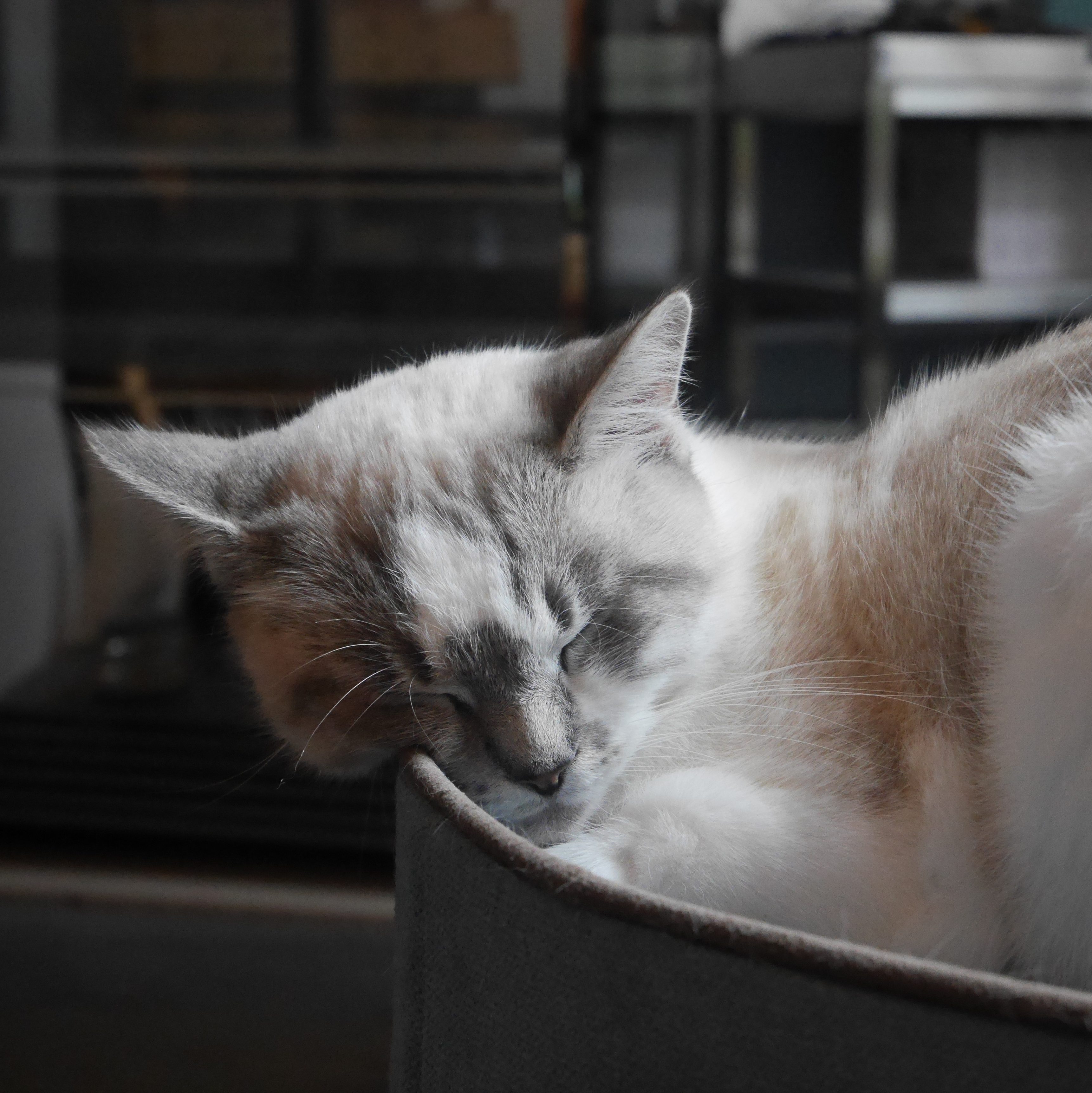 Anna is een Ragdoll en Britse Korthaar mix met prachtige ijsblauwe oogjes en een mooie kleurtekening. Ze is een rustige, lieve poes met een heel open karakter, maar ze laat zich niet gemakkelijk strelen. In plaats daarvan zoekt ze liever een hoog plekje van waaruit ze iedereen in het oog kan houden. Wil je toch graag eens contact maken? Anna is steeds vaker te vinden voor een spelletje met de hengel – maar dan moet de prooi wel naar haar toe komen!